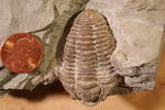 In situ observations of two or three baby Flexicalymene meeki trilobites together on different occasions indicates that this was area was a breeding ground for these trilobites. A protected channel would seem like a good location for that if that was the case. Of special notice are the occasions where intact genal spines occur on the adult Flexicalymene meeki trilobites from this channel. Generally, I have inferred that they were preserved due to the lack of wave action which would have broken them. It appears that the broken spine attachment point is present in trilobites from other localities, such as Stonelick Creek, however no Flexicalymene meeki trilobites are ever found with the genal spines intact at these other localities. I have considered that they were just broken with time within their environment if it was not protected. The spines on the small Isotelus maximus trilobite shown within this gallery are equally impressive for their completeness. I do not know of any other locality that features Flexicalymene meeki trilobites with genal spines.
